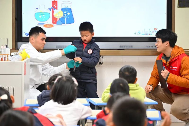 启智科学之光,护航童年成长。12月1日,附属中学小学部一(4)班的教室里,合肥东华公司蓝鸽志愿服务队的青年志愿者们精心策划开展了一堂别开生面的科普主题活动。