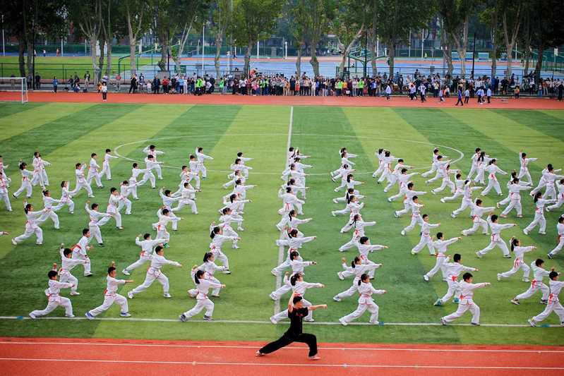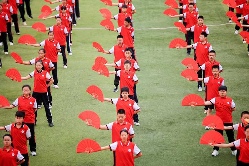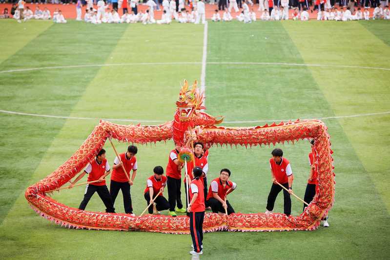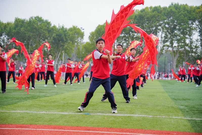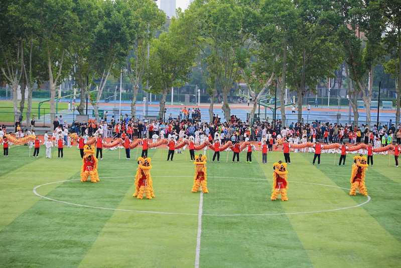 伴随着五彩斑斓的气球绚烂飞升,小学部“旭日东升”武术操、初中部“扇舞飞扬”健身操、高中部“龙狮逐梦”龙狮表演接续上演,将现场气氛推向高潮。