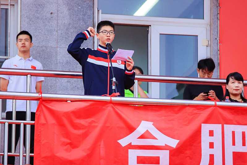 合肥工业大学党委常委、副校长季益洪宣布附属中学第54届田径运动会开幕。