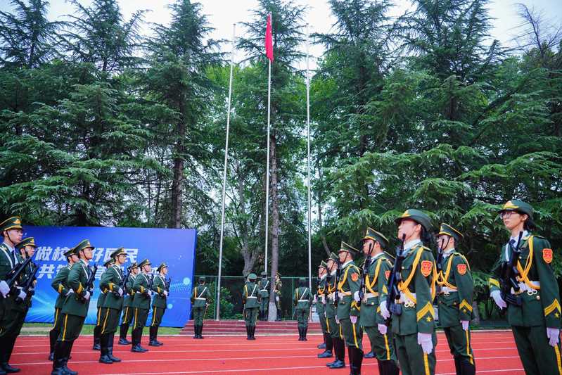 在激昂的《歌唱祖国》旋律中,合肥工业大学大学生国旗护卫队护送国旗入场。当朝阳为五星红旗镀上金边,旗帜在全场师生的注目下冉冉升起,嘹亮的歌声响彻运动场的每一个角落,爱国的赤诚与集体的荣誉感,在每个人心中悄然升腾。