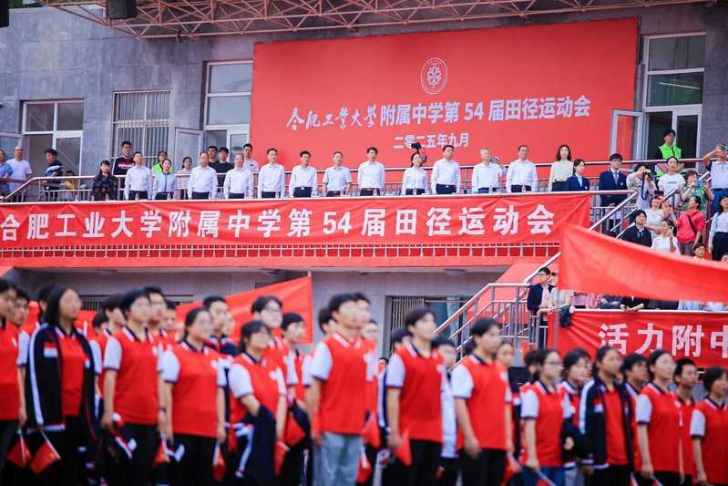 秋光璀璨,盛会启幕。9月27日上午,合肥工业大学附属中学第54届田径运动会隆重开幕。合肥工业大学党委常委、副校长季益洪、工会主席胡兴祥、基础教育与继续教育处处长许明杨、体育部党总支书记钟华勇、校医院院长王志华、团委副书记刘芳芳、体育部副主任李晓峰、皖北扩容工程对口帮扶学校怀远实验小学副校长陈晓梅、附属中学退休老校长王荣梓、刘以成以及附属中学领导班子及全体师生,共同见证了这场青春与力量、速度与梦想的开幕式盛典。