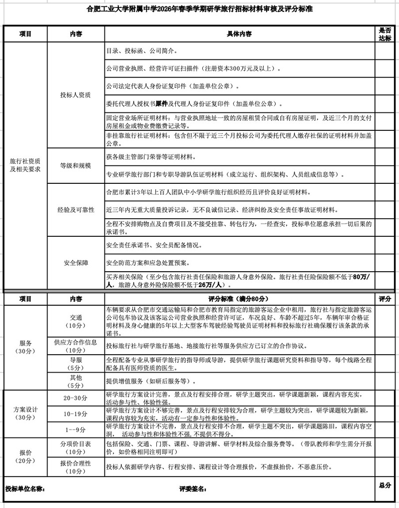 6.合肥工业大学附属中学2026年研学旅行工作领导小组对此次招标事宜有最终解释权。