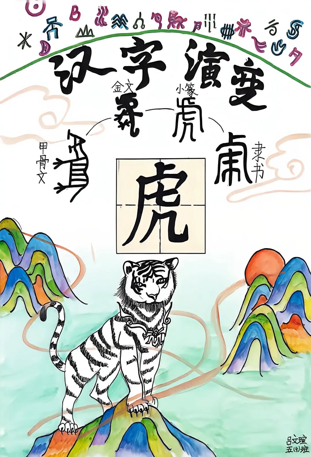 甲骨文、金文的古老形态在同学们的画笔下“复活”,“林”、“休”等字被演绎成一幅幅充满故事性的图画,让汉字的“形”与“意”一目了然。